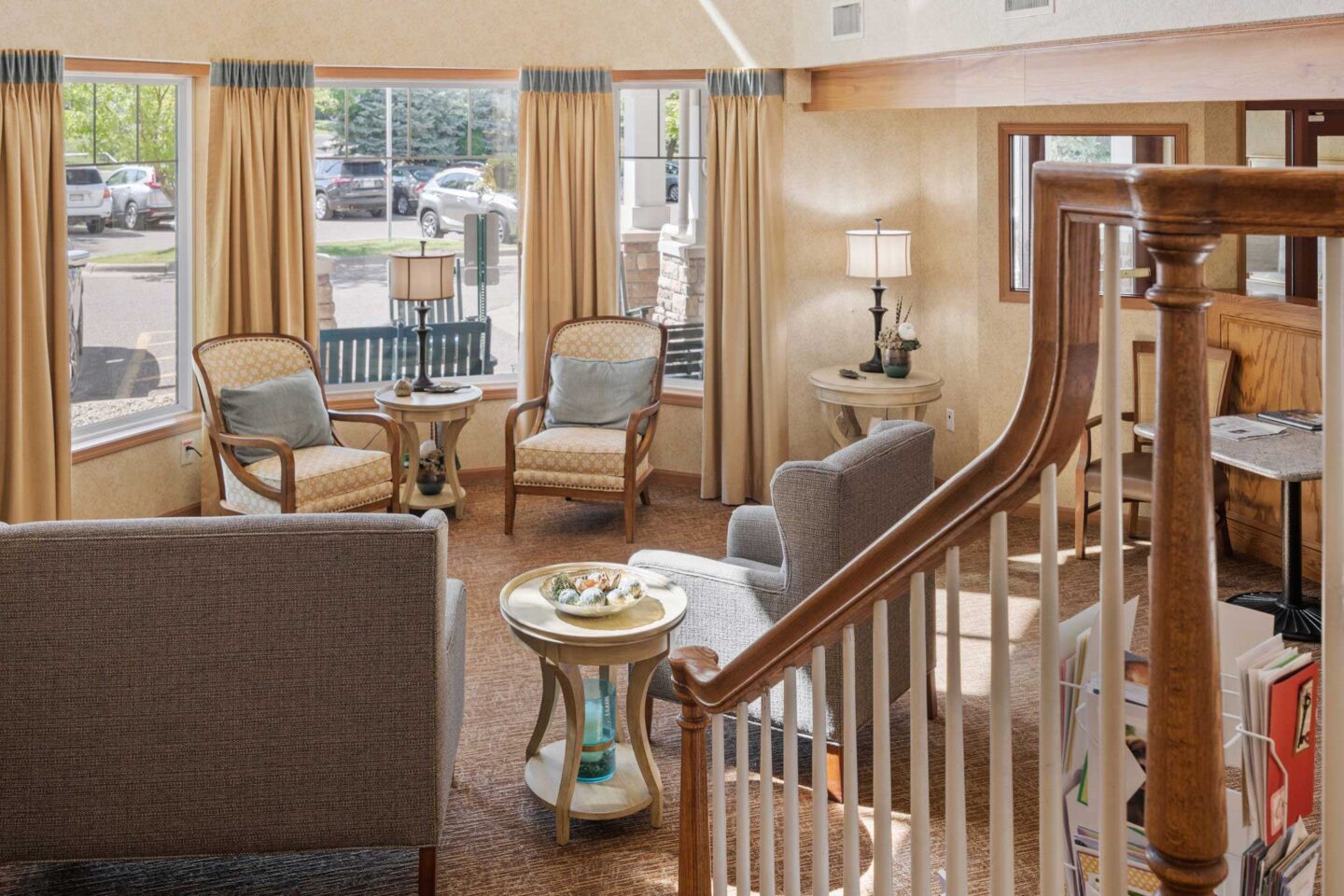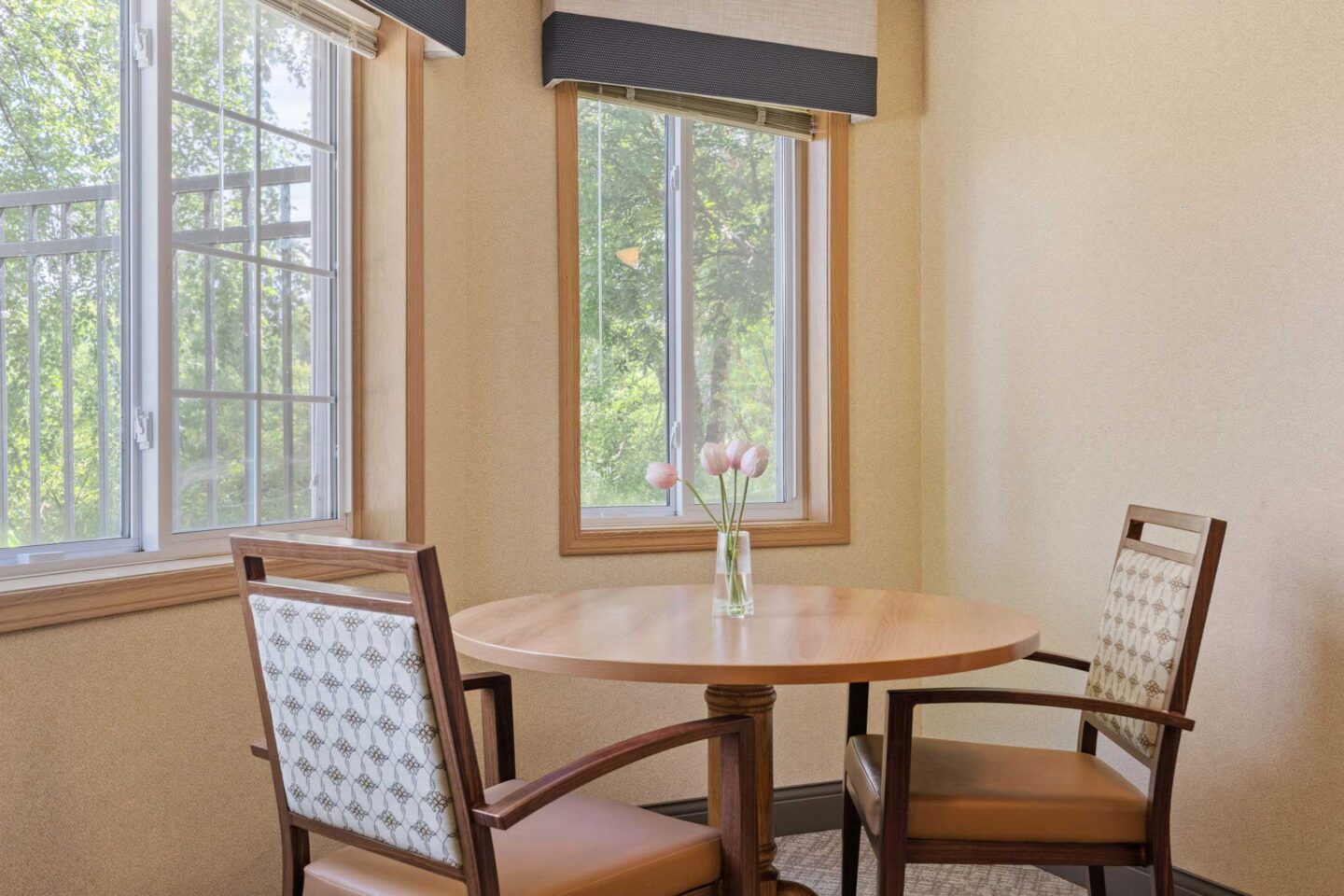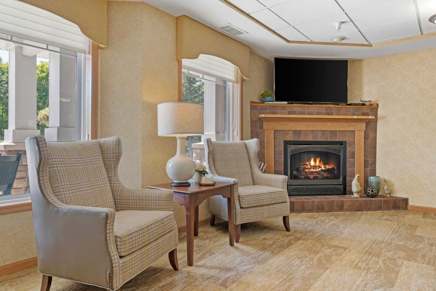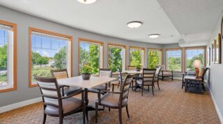 The environment at Cornerstone Assisted Living is purposefully designed. Residents enjoy a variety of welcoming spaces, including spacious dining and separate private dining room, an event space for movies and crafts, a fireside lobby, and sun porch.