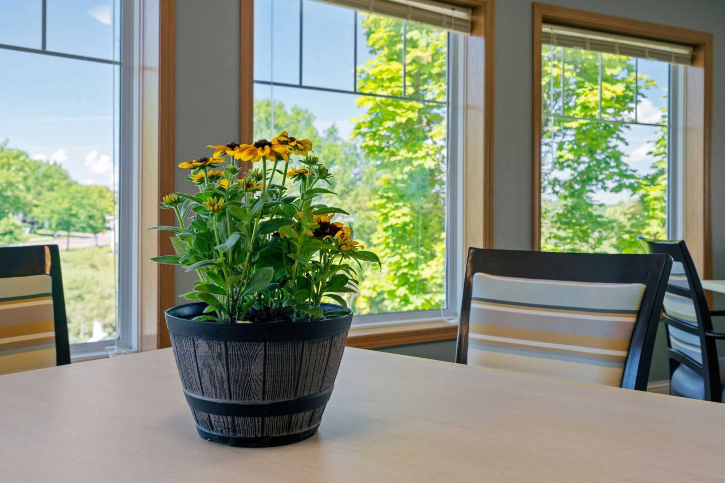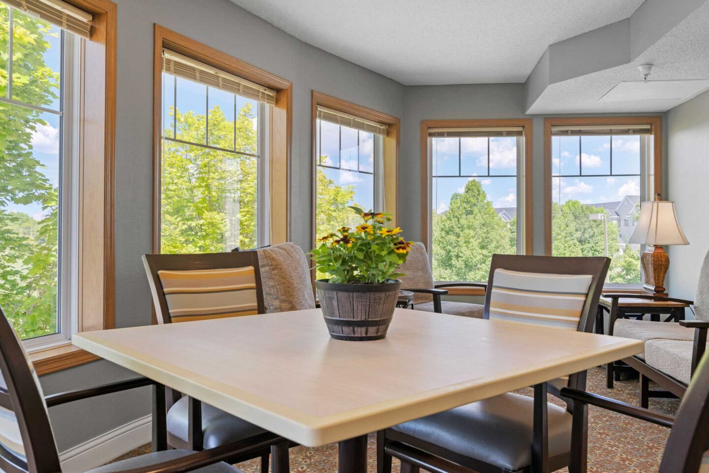 Cornerstone Assisted Living & Memory Care offers beautiful views, a bright and spacious patio and inviting outdoor spaces for Independent Living, Assisted Living, and Memory Care residents to enjoy.