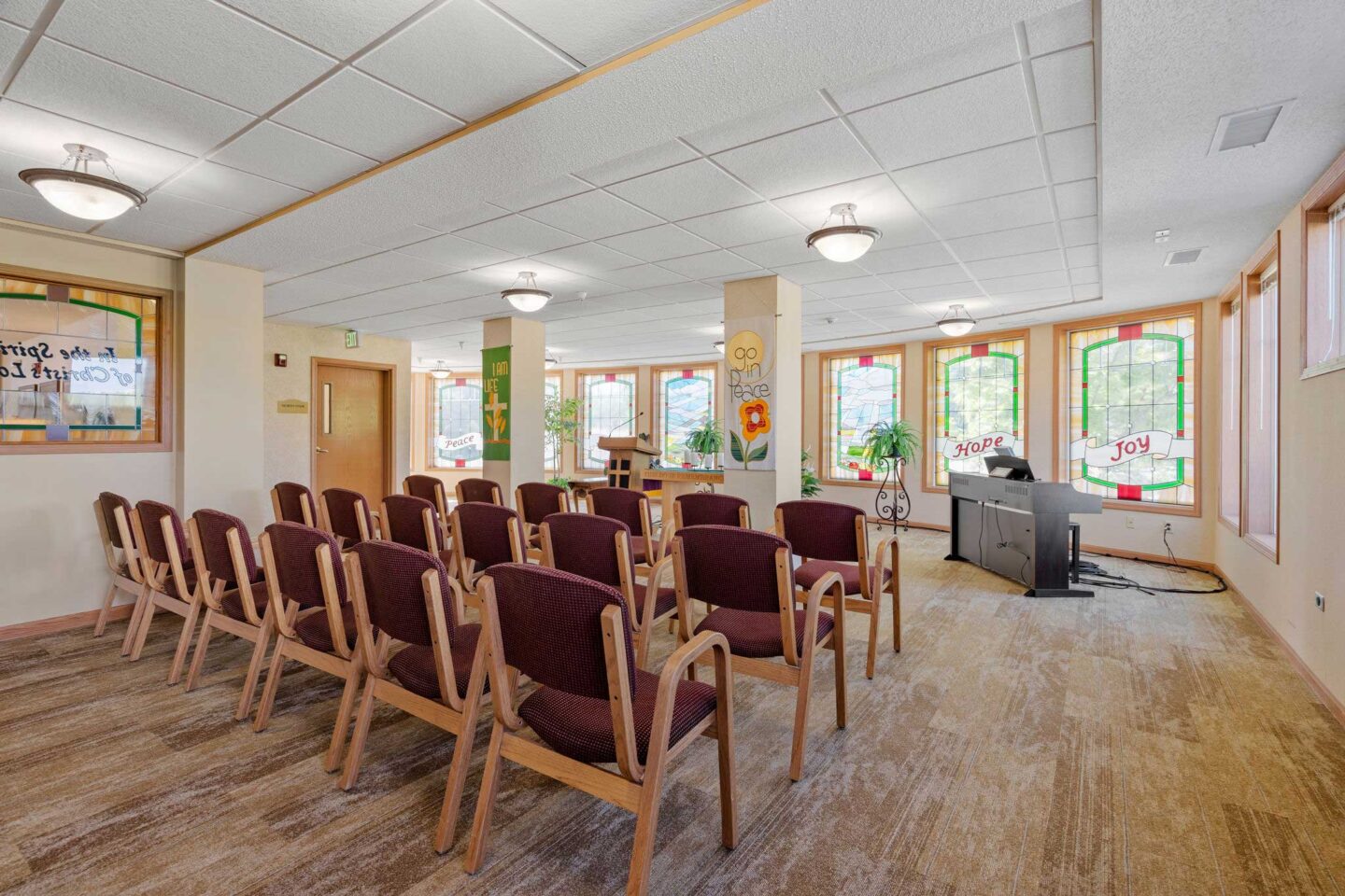 Residents at Cornerstone have access to conveniences like the barber and beauty shop, as well as many activities and events. Participate in fitness classes, arts and crafts and more! Non-denominational services are held in a beautiful chapel.